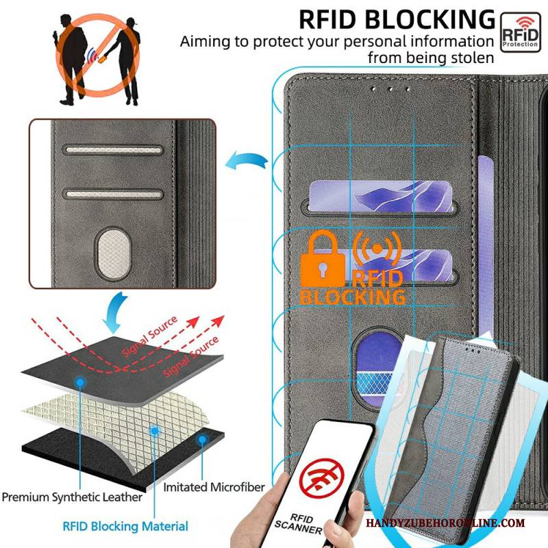 Flip Case Xiaomi Redmi Note 14 5g Rfid-schutz Wellendesign